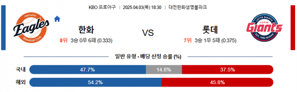 | VIEW | 한화 vs 롯데 4월 3일 KBO | 행배쿤 | 25-04-03 00:00 |